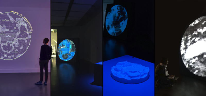 The installation explores the atmospheric re-entry of space debris and its possible fallout into the marine environment, reality by providing one or more counter-narratives on different levels: terrestrial, sub-marine and orbital.