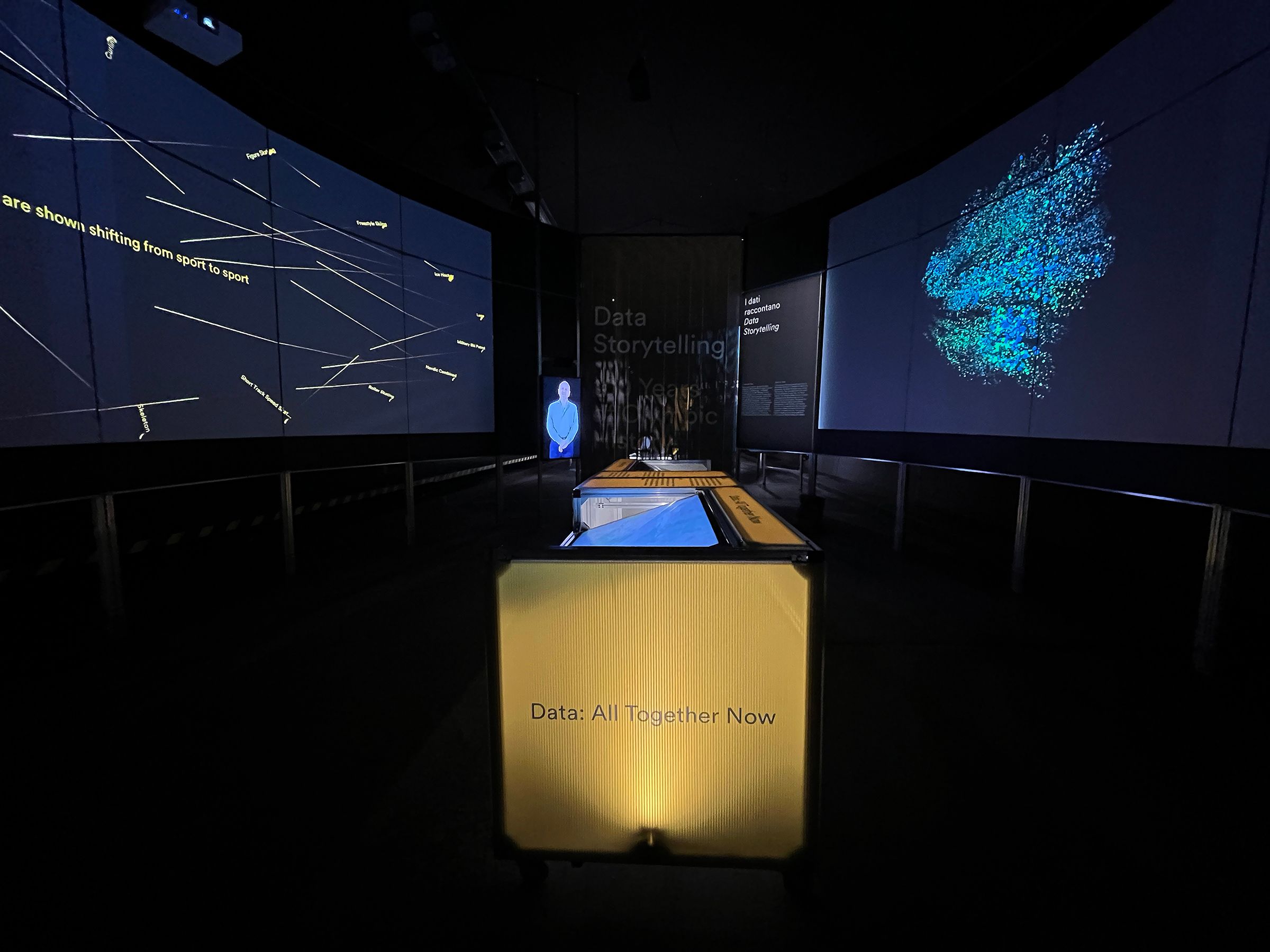The installation unfolds through two complementary narrative pathways. All Together Now offers a sweeping view of Olympic history, tracking the growth of national teams, disciplines, and athletes to reveal the shifting dynamics of the Winter Games. At the same time, One by One zooms in on individual stories, bringing both celebrated and lesser-known athletes to the forefront and tracing their Olympic journeys in rich detail.